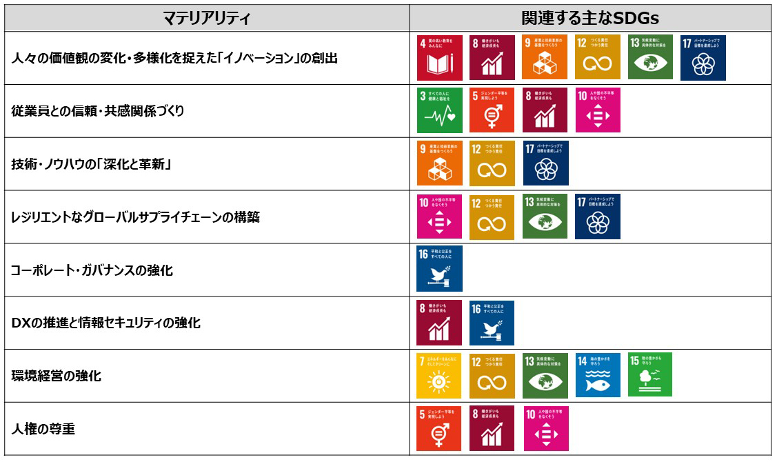 | マテリアリティ 人々の価値観の変化・多様化を捉えた 「イノベーション」の創出 |