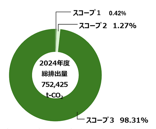 2024年度は、スコープ3集計方法を、従来よりも実際の活動に近い形で集計結果に反映されるよう見直し、過去に遡って再集計しました。