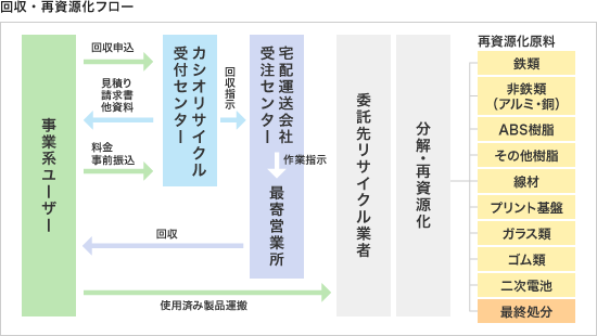 お申し込みいただければ、カシオ計算機が責任を持って回収・再資源化処理を致します。当社の環境保全活動にご協力頂きますようお願い申し上げます。