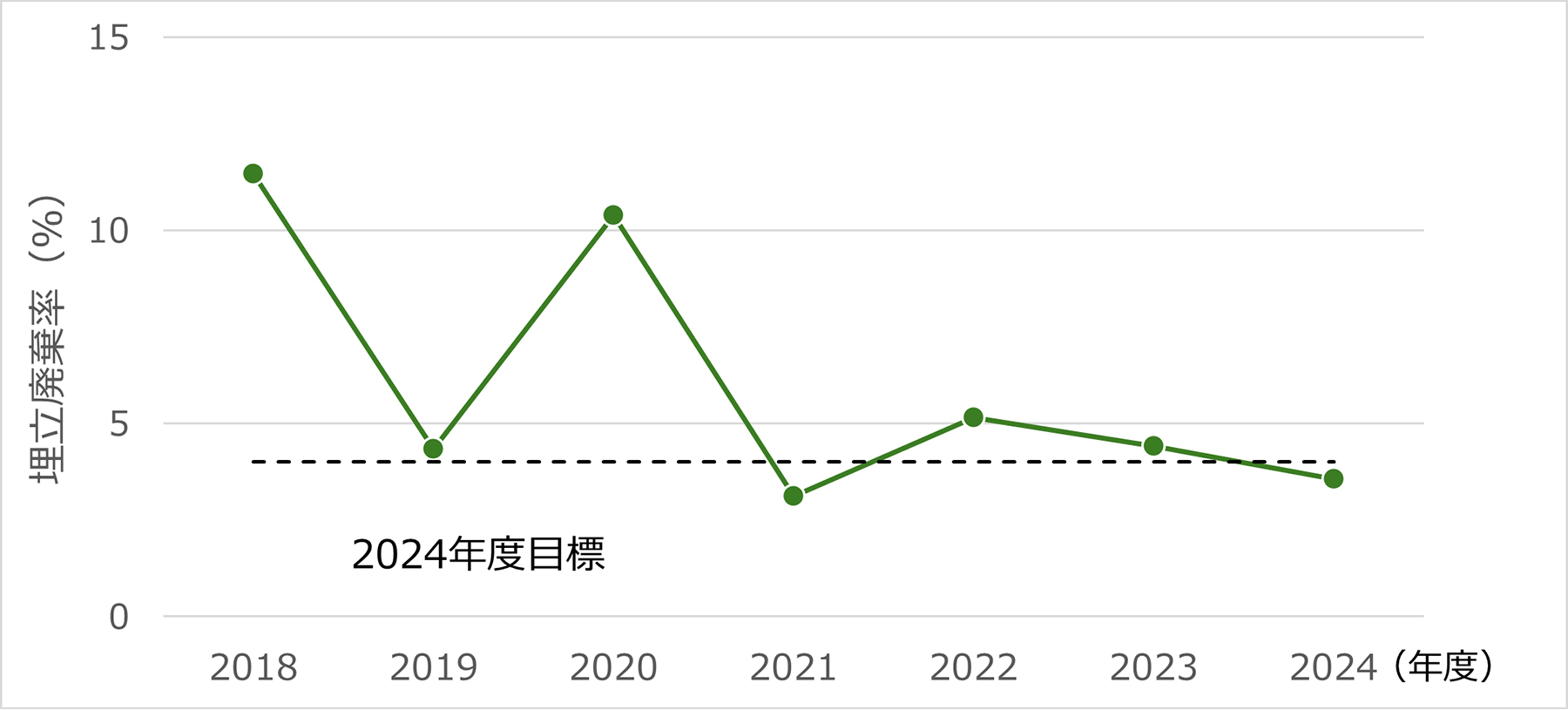 また、環境負荷を軽減することを目的に、埋立廃棄の削減に取り組み、埋立廃棄率の2024年度の目標を4%以下に設定、この目標を達成しました。