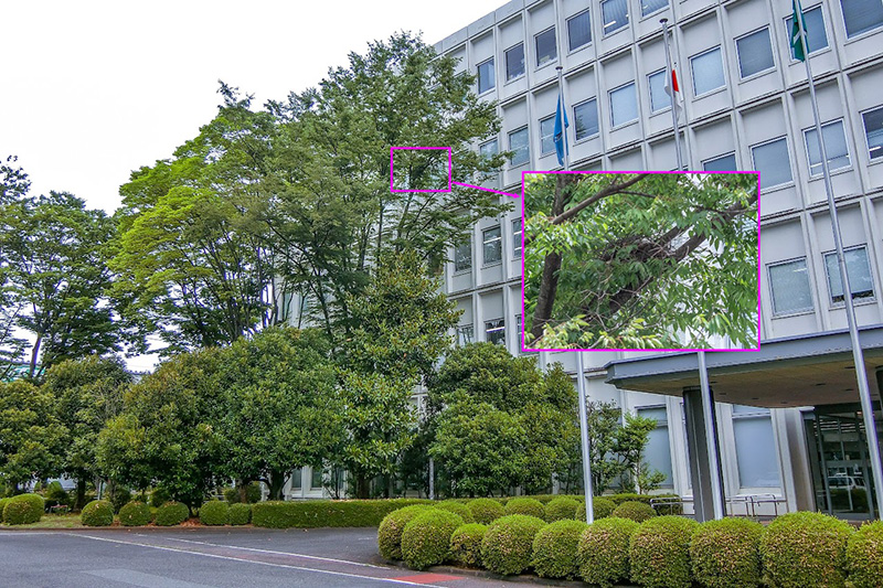羽村技術センターでは、2022年に敷地内のケヤキに絶滅危惧種の猛禽類であるツミの営巣が確認されました。それ以前は同事業所の西側にある武蔵野公園内でツミの営巣が観察されていましたが、2022年は当社敷地内に営巣場所を変更したようです。