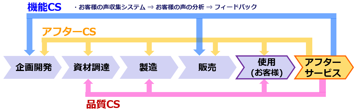 また、製品を使っていただくお客様の安心と信頼を得るために、三大CS活動を通じてアフターサービスおよび製品品質の改善を行い、お客様の声を製品・サービスの改善に役立てる活動に取り組んでいます。