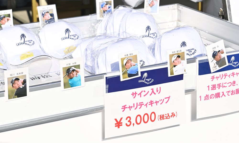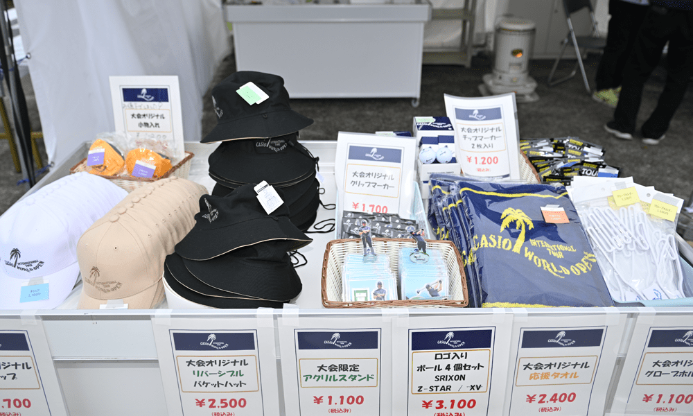 会場でしか手に入らない、大会オリジナルウエアやグッズなどのお買い得商品や、石川遼×カシオワールドオープンの限定コラボグッズも販売します!