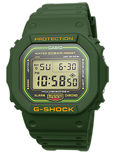 第一弾のスペシャルテーマ“COLOR”のカスタマイズモデルとして、“G-SHOCK”初のカラーモデルとして登場した「DW-5600C-9BV(1987年 海外発売)」、「DW-5600B-3V(1991年 海外発売)」、「DW-5600B-2V(1991年 海外発売)」のイエロー、グリーン、ブルーを再現した“FIRST COLOR”をサービス開始と同時に各500本の数量限定で発売します。