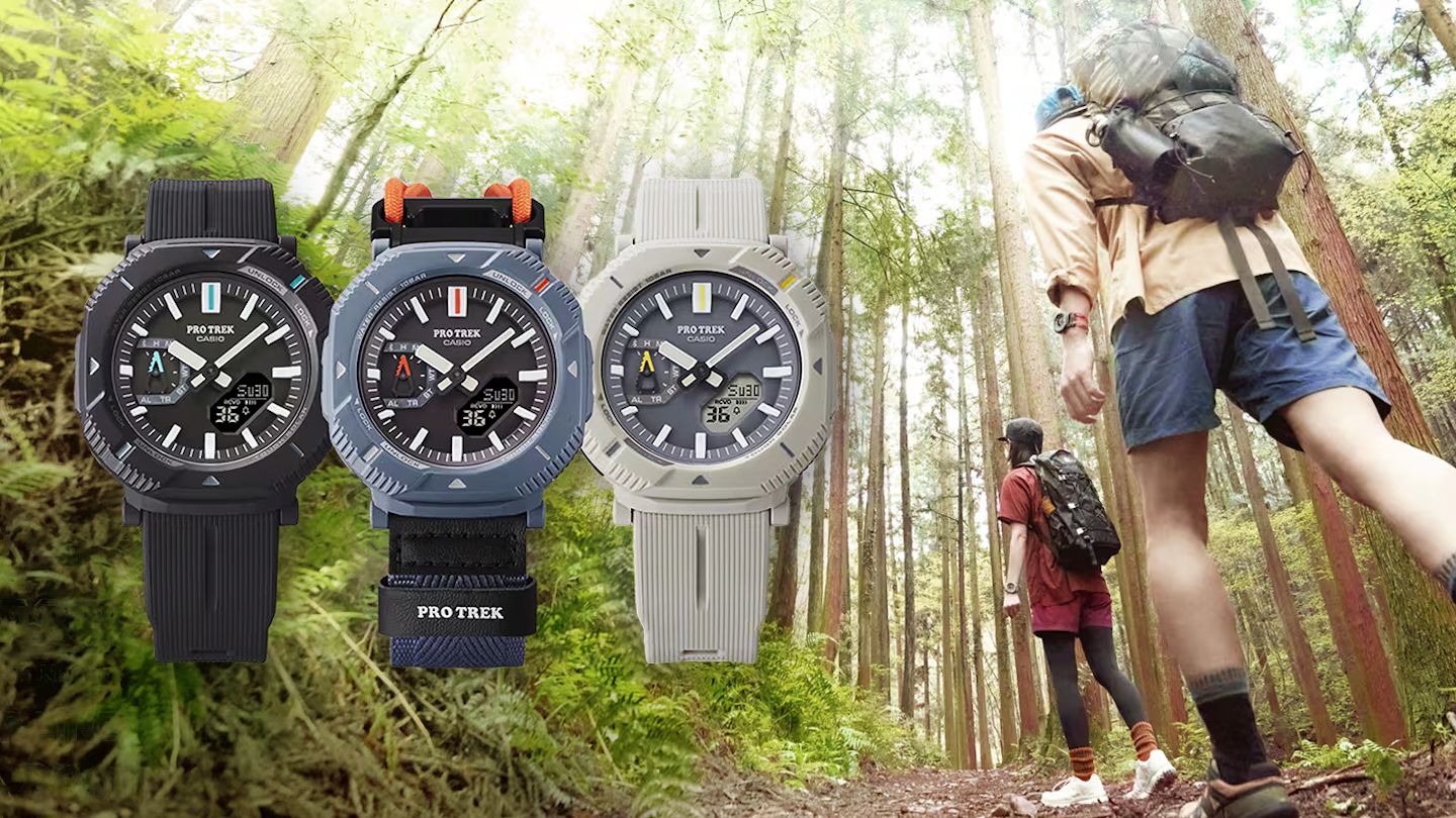 スクエアのベゼルが回転する独自のロータリーガードベゼルを採用したアウトドア向けのウオッチです。普段使いにマッチするスタイリッシュな角形スタイルと、ロングトレイルやウルトラライトハイクなどアクティビティをする際には操作性に優れたスタイルへと切り替えが可能です。Bluetooth®によるスマートフォンとの連携機能を搭載し、時刻・位置記録機能で思い出のスポットを管理できるなど、アウトドアの楽しみが広がります。