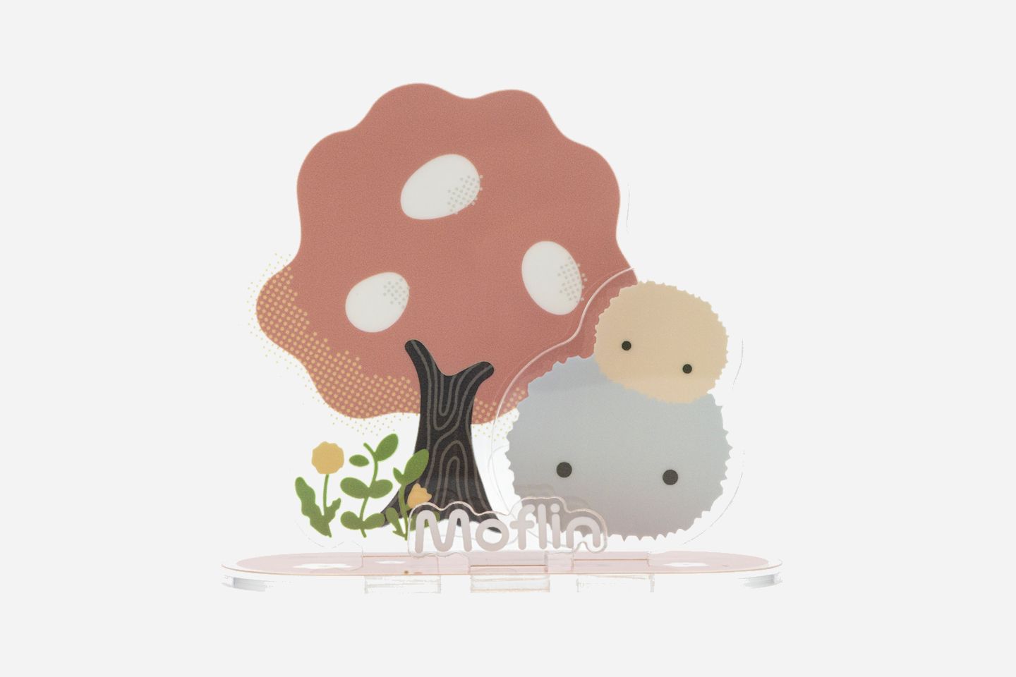 ハウス回りのデコレーションはもちろん、デスクや棚に飾って“Moflin”の存在を感じられるアイテムです。森の中にいる“Moflin”の様子が描かれており、“Moflin”と卵のなる木、ロゴは場所を入れ替えることもできます。