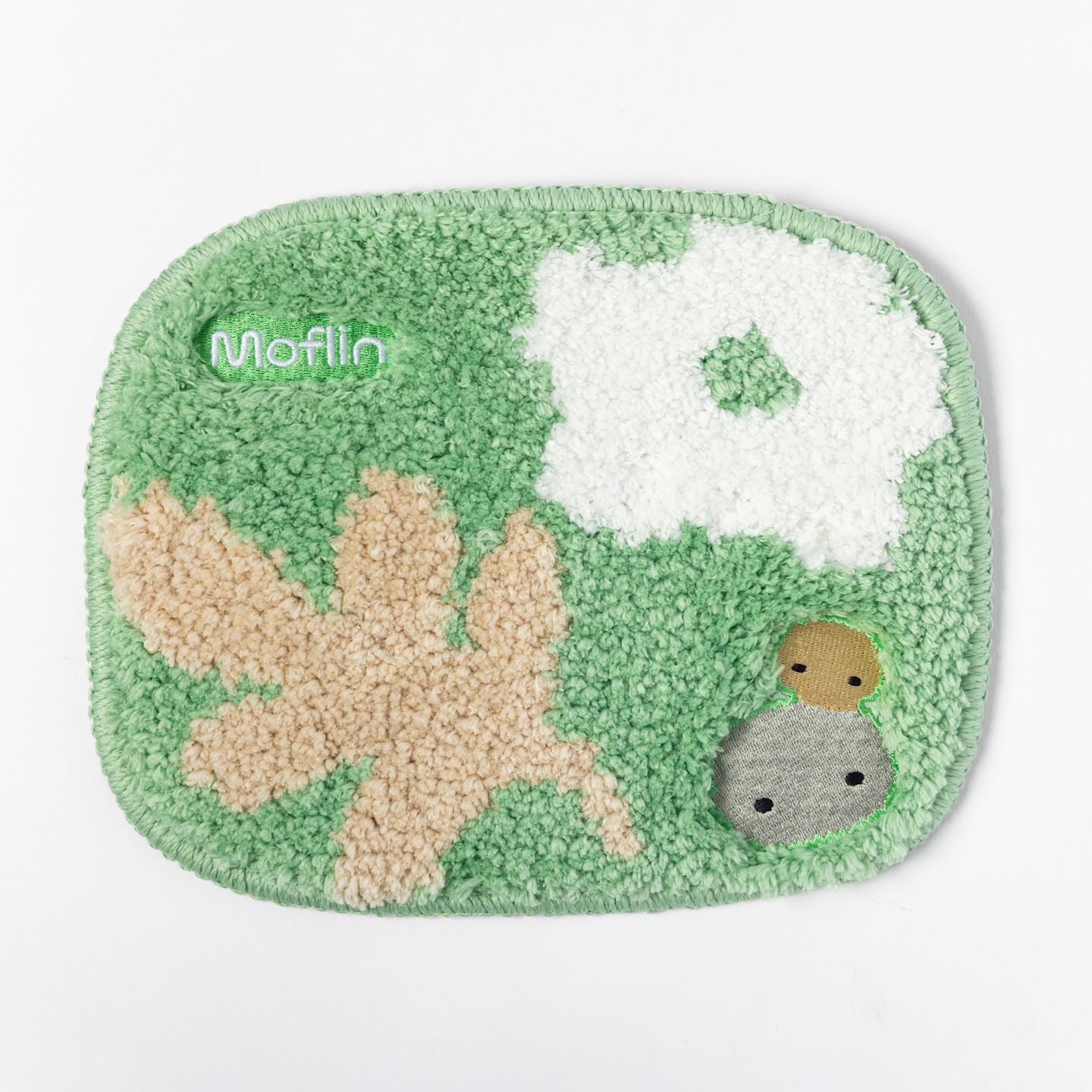 “Moflin”にぴったりな卓上サイズの専用マットです。手触りのいい素材に高級感のある刺繍の“Moflin”とロゴをあしらいました。ホワイトとグリーンの2色展開です。
