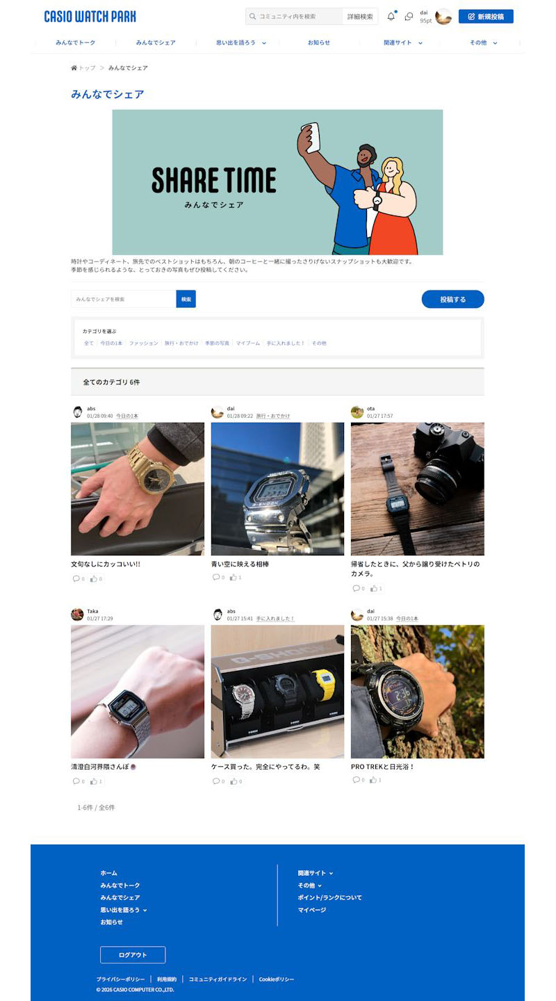 今後も「CASIO WATCH PARK」を起点に、ユーザー同士のつながりとカシオの腕時計ブランドを中心としたコミュニティの活性化を図り、新たな体験を提供できるよう取り組んでまいります。