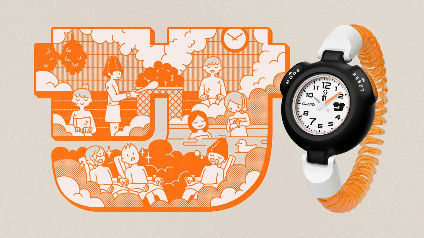 耐熱・耐湿設計のケースに加え、裏蓋のネジが肌に触れにくい構造や、温浴施設で馴染みのある鍵のカールバンドなど、サウナでの使いやすさを追求しました。