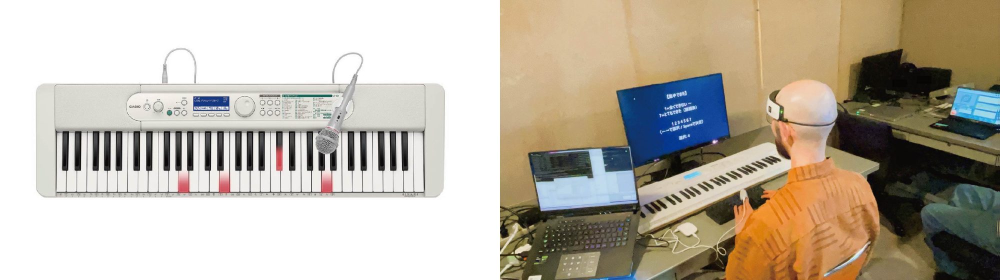 ・実験方法:「LK-530」に収録された楽曲を被験者に聴いてもらい、認知課題を実施しながら脳血流測定用NIRSシステム、心拍センサー、アイトラッカーを用いて測定