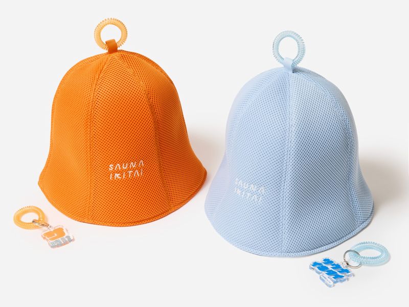 かぼちゃ氏:サウナハットは、「サ時計」のオレンジと、「サウナイキタイ」のブルーの2パターンを揃えました。サ時計の象徴的なカールバンドをサウナハットの特徴でもあるループ部分に取り入れたデザインで、折り畳んでも形が崩れにくく、とても軽いので持ち運びも簡単です。