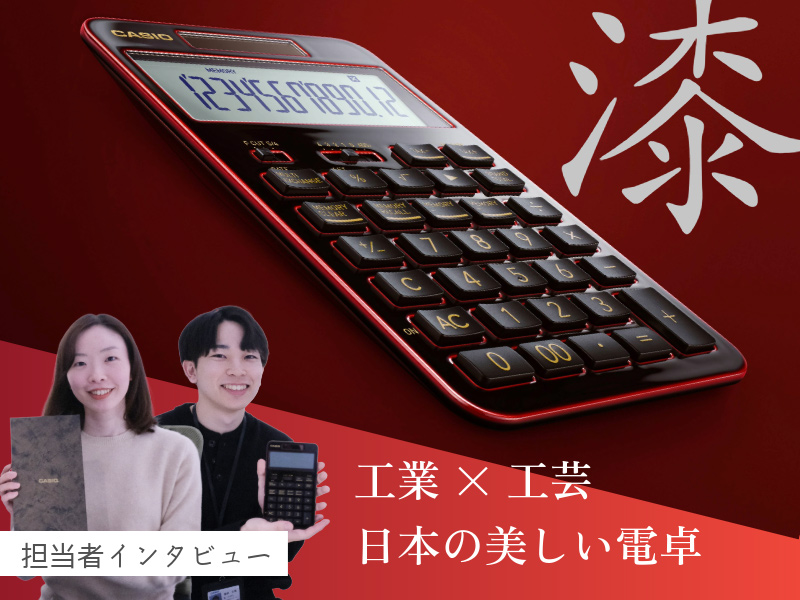 カシオ計算機は、日本の伝統工芸「漆塗り」とカシオ電卓のフラッグシップモデル「S100X」を組み合わせた『S100X-JC1-U』を4月9日に発売します。老舗越前漆器メーカーである山久漆工の熟練塗師が一台ずつ手作業で漆塗装を施した、世界限定650台のモデルです。漆の深い艶と「S100X」の機能美を併せ持つ、プレミアムな電卓の誕生です。今回は、商品企画担当者とデザイナーに本モデル誕生の背景や開発秘話を聞きました。